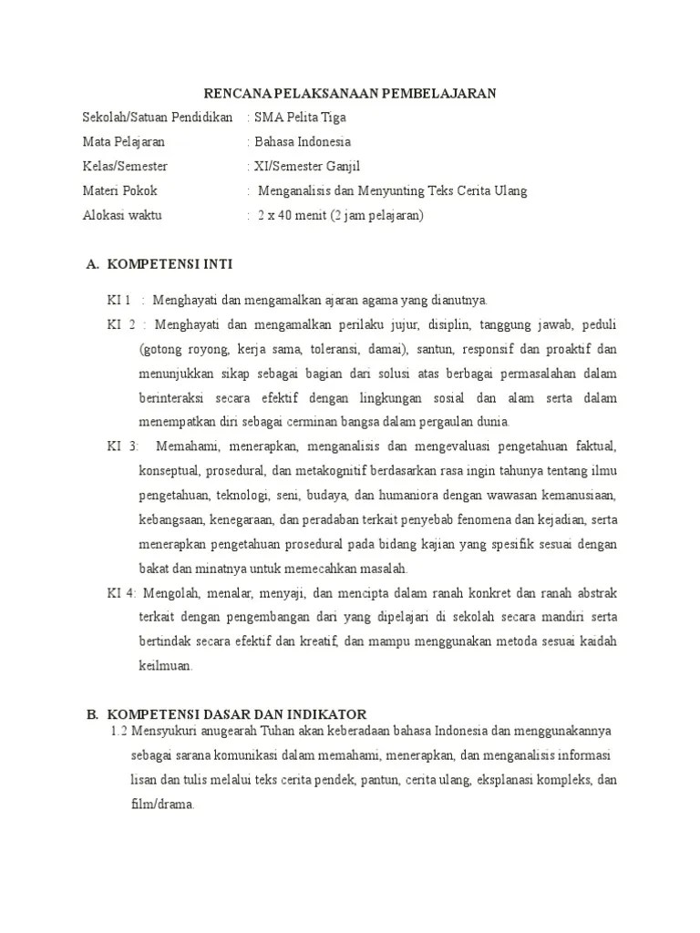 Pengembangan dan pendidikan budaya dan. Nelius harefa universitas kristen indonesia. Analisis kualitas rencana pelaksanaan pembelajaran. Tujuan penelitian ini adalah untuk mengetahi komponen rpp yang dibuat guru bahasa indonesia smp negeri 1 kota bengkulu berdasarkan . Rencana pelaksanaan pembelajaran (rpp) guru bahasa indonesia tingkat smp di kota.